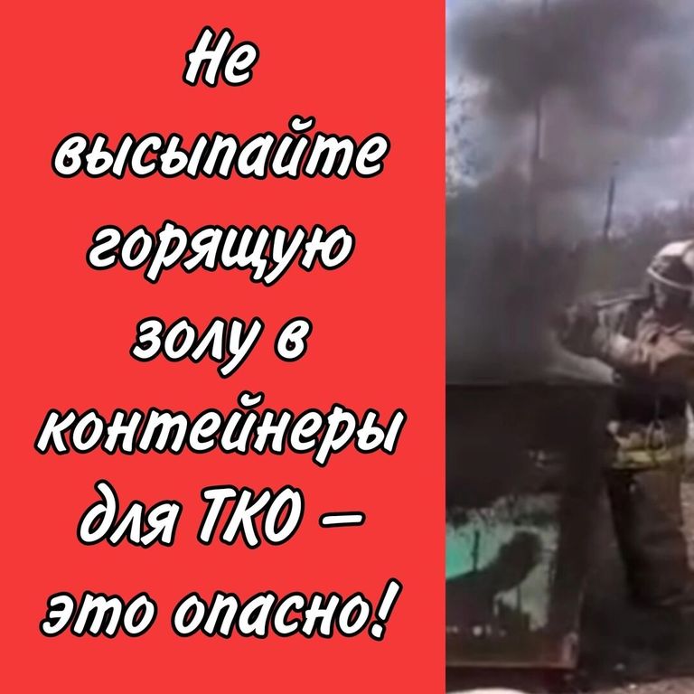 Не высыпайте горящую золу в контейнеры для ТКО! Это опасно!